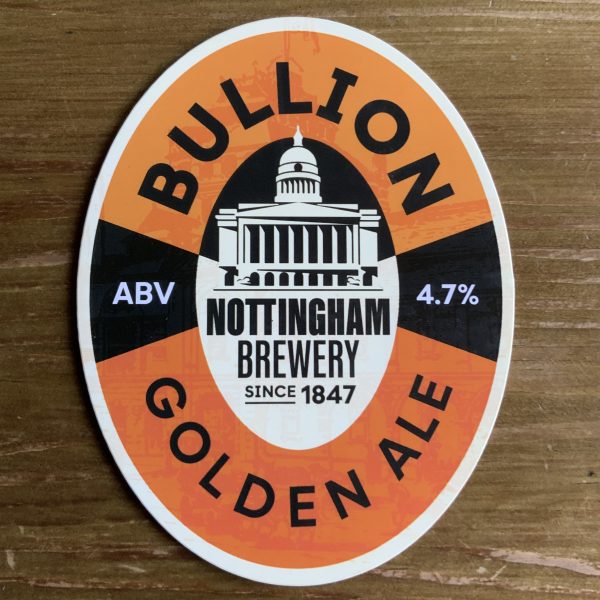 Beer: Bullion Brewery: Nottingham %ABV: 4.7% Description: Golden ale Drink in/Takeaway Price per pint: £4/£3.25
