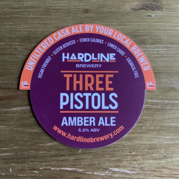 Beer: Three Pistols Brewery: Hardline %ABV: 5.2% Description: Amber ale Drink in/Takeaway Price per pint: £4.40