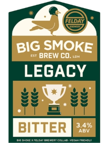 Beer: Legacy Brewery: Big Smoke %ABV: 3.4% Description: Bitter. A Big Smoke X Felday Brewery Collab. Vegan friendly Drink in/Takeaway Price per pint: £4/£3.25