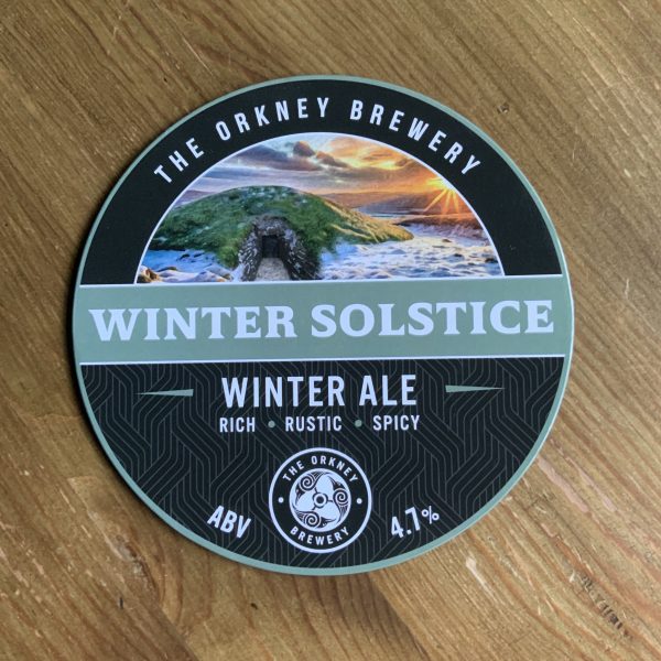Beer: Winter Solstice Brewery: Orkney %ABV: 4.7% Description: Rich, Rustic, Spicy Drink in/Takeaway Price per pint: £4/£3.25
