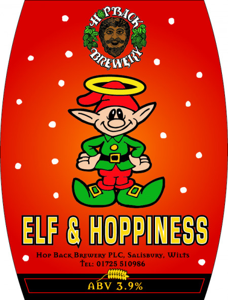 Beer: Elf & Hoppiness Brewery: Hopback %ABV: 3.9% Description: Pale Chestnut coloured easy drinking Christmas brew with juicy hops and seasonal spices. Drink in/Takeaway Price per pint: £4/£3.25