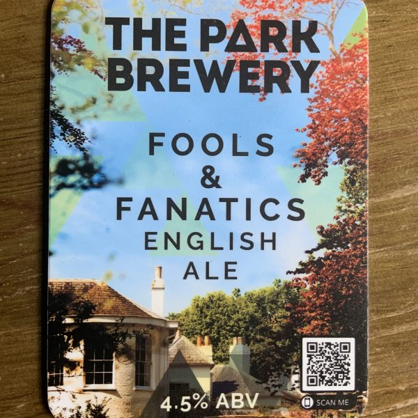 Beer: Fools & Fanatics Brewery: The Park Brewery %ABV: 4.5% Description: English Pale Ale brewed with Ernest and UK Cascade Drink in/Takeaway Price per pint: £4