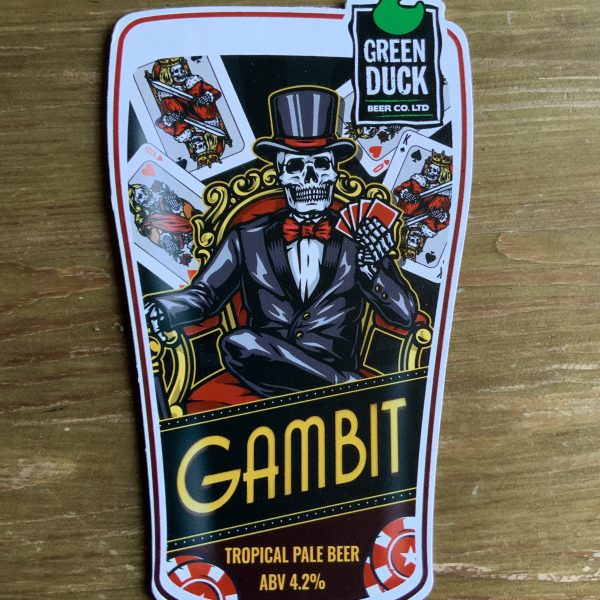 Beer:  Gambit Brewery:  Green Duck %ABV:  4.2% Description: Necteron and Citra pale ale, expect big tropical flavours Drink in/Takeaway Price per pint: £4/£3.25