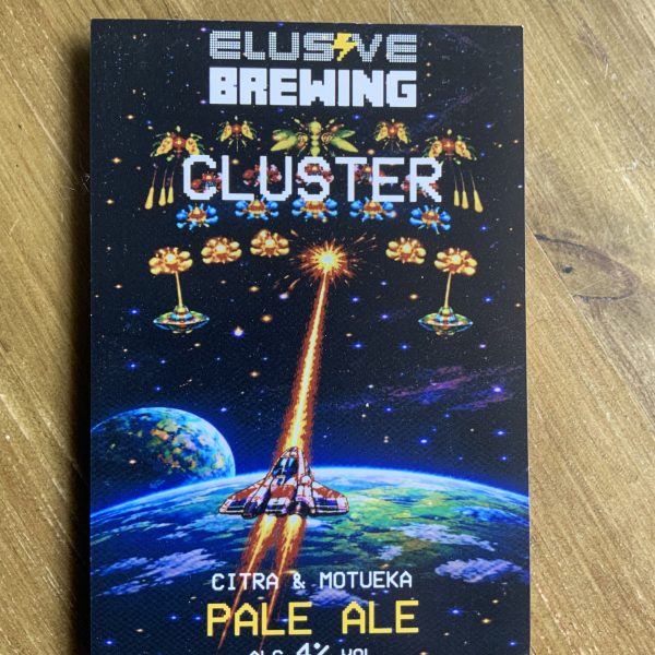 Beer: Cluster Brewery: Elusive %ABV: 4% Description: Citra & Motueka pale ale Drink in/Takeaway Price per pint: £4/£3.25