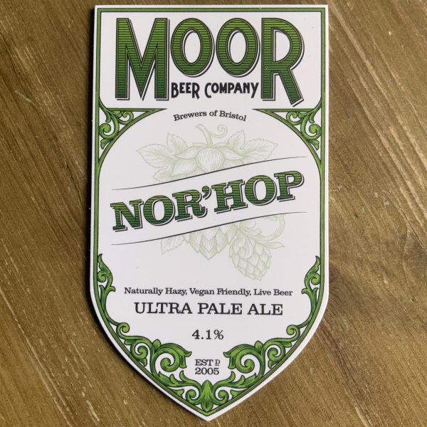 Beer: Nor’Hop Brewery: Moor %ABV: 4.1% Description: Ultra pale ale. Naturally hazy, vegan friendly Drink in/Takeaway Price per pint: £4/£3.25